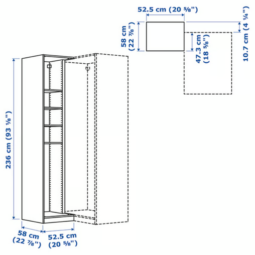 PAX Add-on corner unit with 4 shelves, grey-beige, 53x58x236 cm, 90515113 (Pre-order)