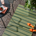 The rug is perfect for outdoor use because it’s water resistant and made for easy care.